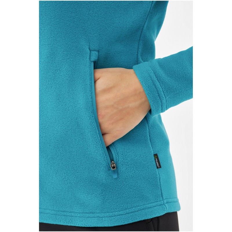 Жіноча флісова куртка – міжшаровка Tesero Lady від Viking виготовлена ​​зі 100% поліестеру з відомого матеріалу Polartec. Цей матеріал чудово утримує тепло, що робить фліс ідеальним додатковим утеплюючим шаром під курткою. Завдяки такій гнучкій конструкції він ідеально прилягає до тіла. Він антистатичний, тобто не накопичує статичну електрику, а тканина стійка до утворення катишок. Фліс має дві бічні кишені на блискавці.