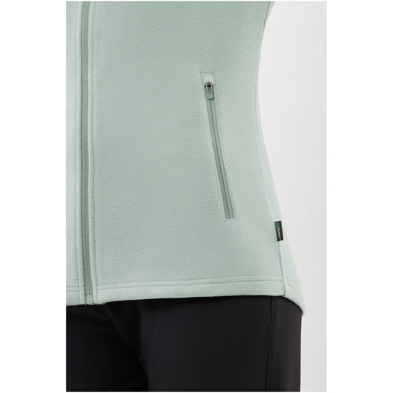 Жіноча флісова куртка – міжшаровка Tesero Lady від Viking виготовлена ​​зі 100% поліестеру з відомого матеріалу Polartec. Цей матеріал чудово утримує тепло, що робить фліс ідеальним додатковим утеплюючим шаром під курткою. Завдяки такій гнучкій конструкції він ідеально прилягає до тіла. Він антистатичний, тобто не накопичує статичну електрику, а тканина стійка до утворення катишок. Фліс має дві бічні кишені на блискавці.