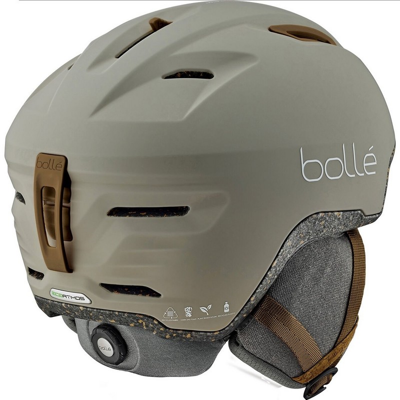Завдяки литій конструкції першими атрибутами ECO ATMOS є легкість та комфорт. Розроблений з використанням екологічних матеріалів, включаючи підкладку з лайкри, ремені, роздільники, корпус та амбушури, частково виготовлені з перероблених або біоматеріалів, а також пробки, змішаної з пінополістиролом, це перший шолом Bollé з екологічно безпечним підходом для затятих лижників, які хочуть внести внесок у планету. Активна система вентиляції з 8 вентиляційними отворами також робить ECO ATMOS одним із найбільш вентильованих шоломів у лінійці.